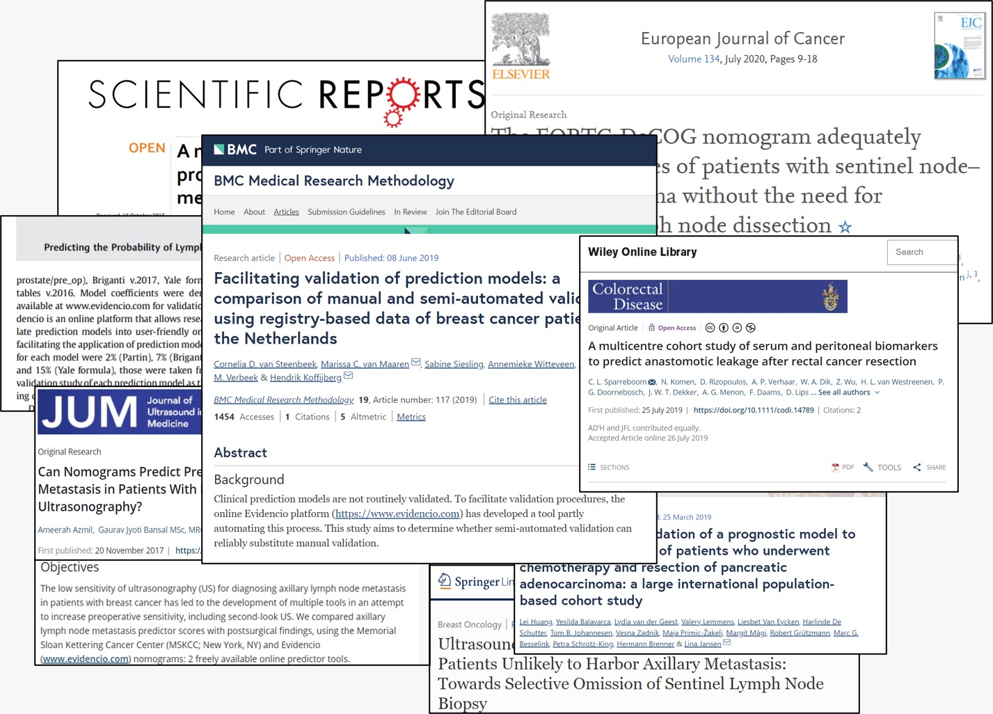 More and more researchers are discovering the value of including Evidencio in their publications. Here is a list of articles that reference an algorithm on Evidencio as part of the publication. As such, research output becomes usable, interpretable, and testable.