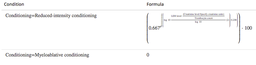 Users can define Custom calculations based on custom mathematical formulas expressed in terms of algorithm variables. Evidencio supports both single and conditional custom formulas. The custom formula(s) used by an Evidencio algorithm can always be viewed in the details section of the respective algorithm, so that algorithm users can exactly identify the underlying algorithm logic.