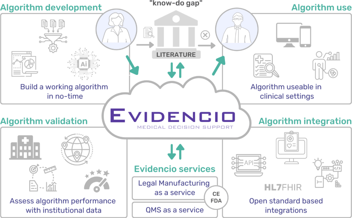 Evidencio specializes in certifying medical algorithms as medical devices and can act as Legal Manufacturer of your medical device algorithm. Giving you accelerated market access.